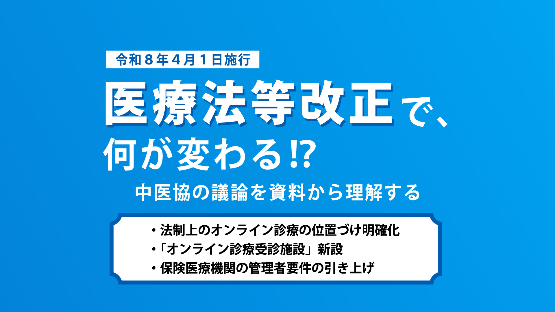 令和8年4月1日から段階的に施行される医療法等改正に伴い、現在、中央社会保険医療協議会(中医協)において細かいルール…